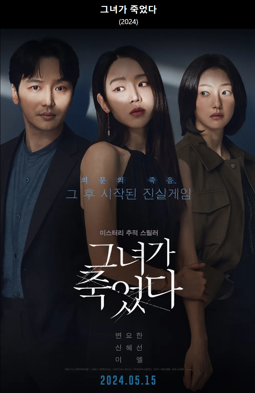 2024년 개봉한 영화 그녀가 죽었다는 치밀한 미스터리와 강렬한 스릴러 요소가 결합된 작품으로, 관객들을 긴장감 속으로 몰아넣는다. 영화는 충격적인 사건을 중심으로 얽힌 인물들의 심리전과 예상치 못한 반전으로 가득 차 있다. 범인의 실체를 추적하는 과정에서 드러나는 숨겨진 진실과 복잡한 인간관계가 관객들에게 강한 몰입감을 제공한다.